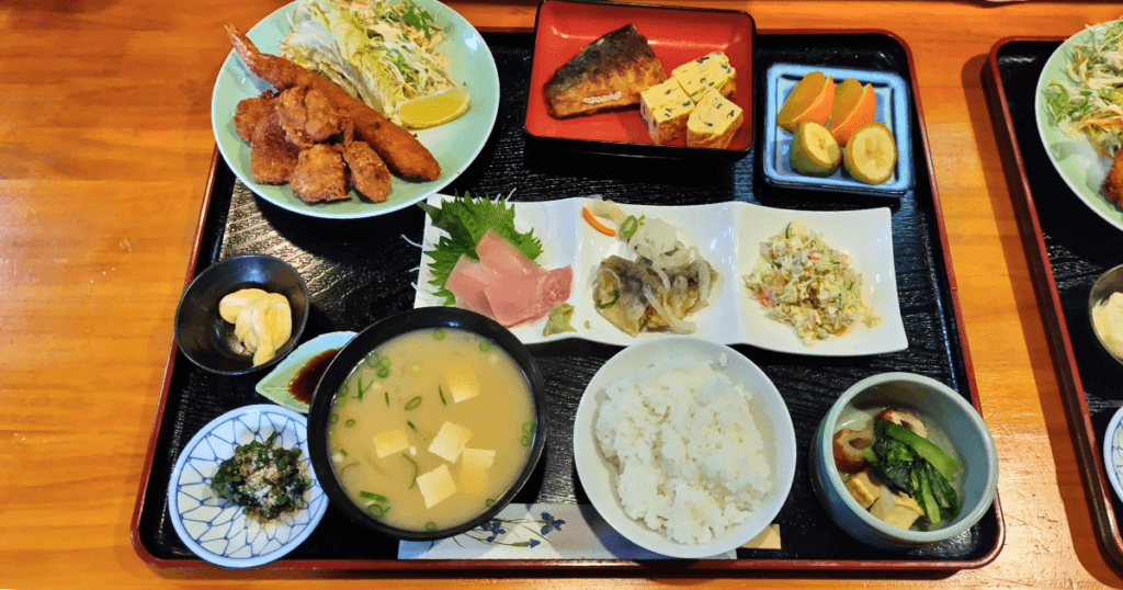 焼き魚、お刺身、おばんざいまで付いてくる。