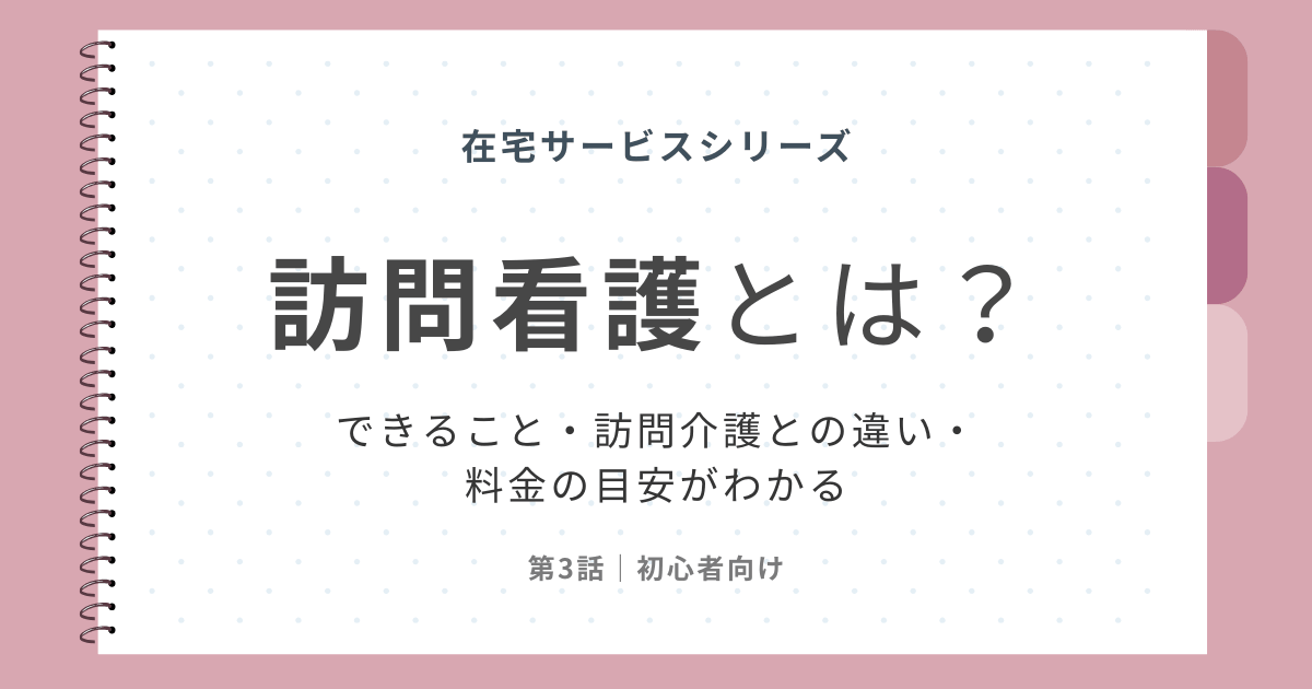この記事では、訪問看護でできること・できないこと、訪問介護との違い、利用までの流れと料金の目安をやさしく整理していきます。
