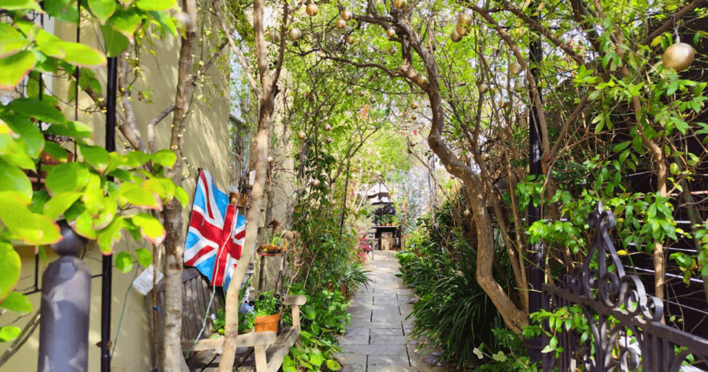 入り口までの道もかわいくて、ちょっとした“旅感”を味わえます。