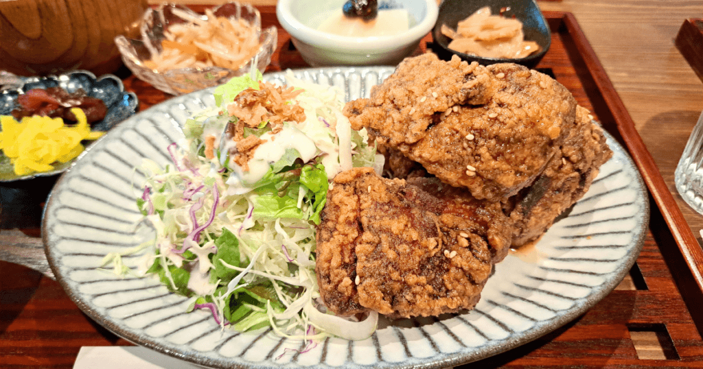 今回は**日替わり定食の「甘辛からあげ定食」**を注文しました。